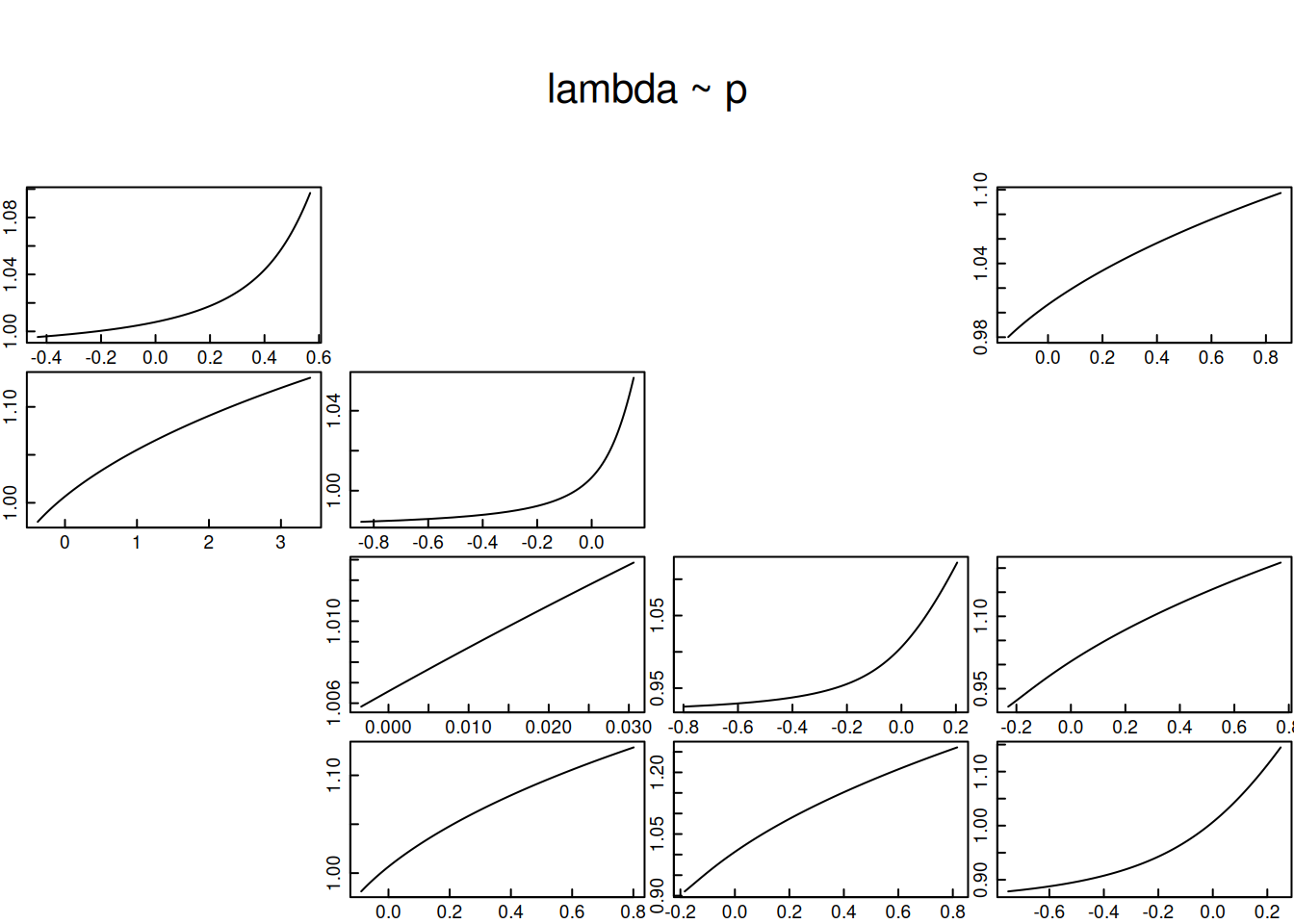 # ggplot2::labs(title = 'P - P', x = 'p', y = 'Lambda')