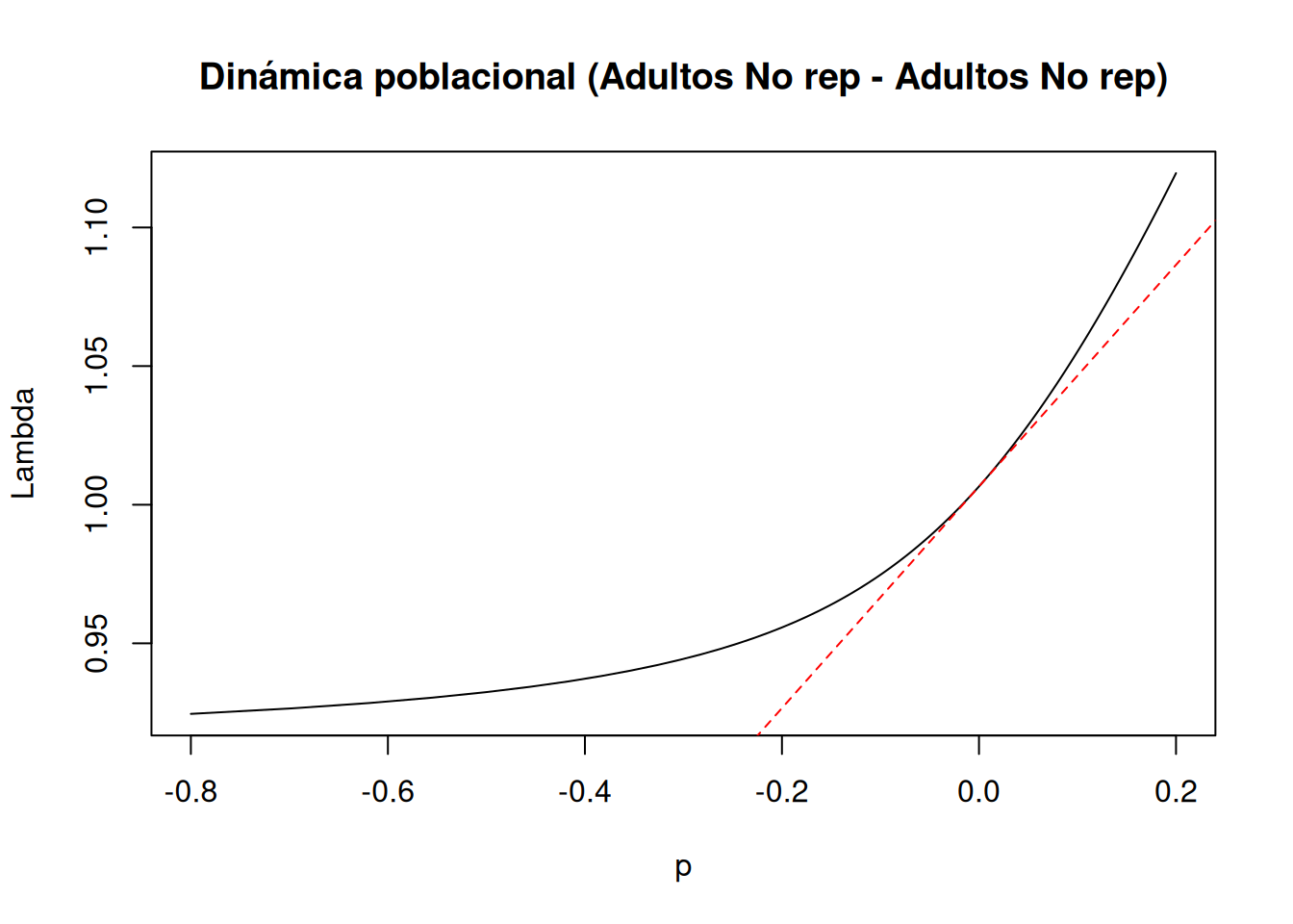 title(main = "Dinámica poblacional (Adultos No rep - Adultos No rep)",
