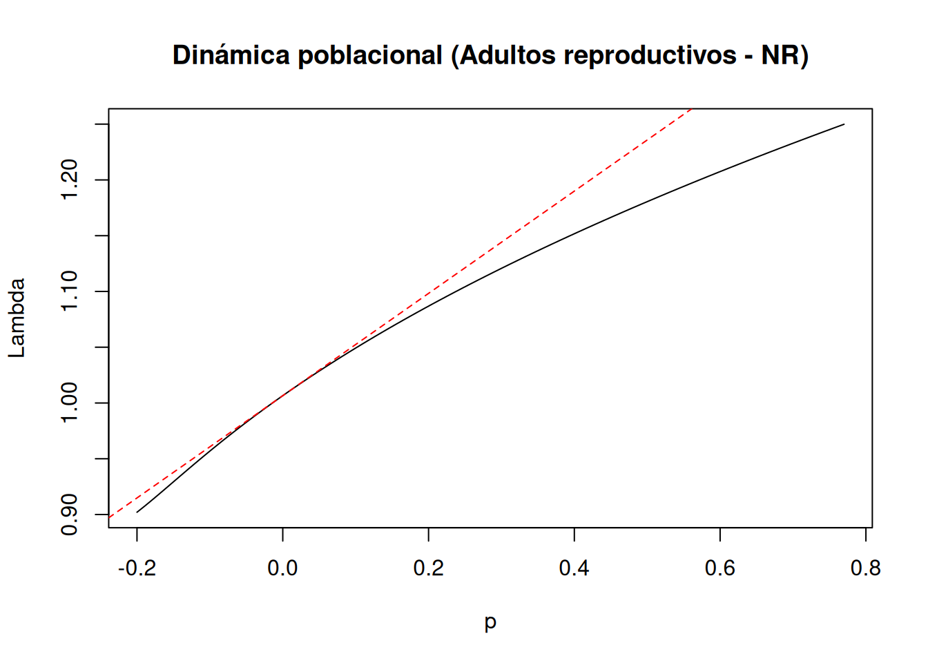 0, 1, 0), prange = seq(-0.8, 0.2, 0.01)) # el efecto de perturbación de la transición de no reproductivo a adulto reproductivo