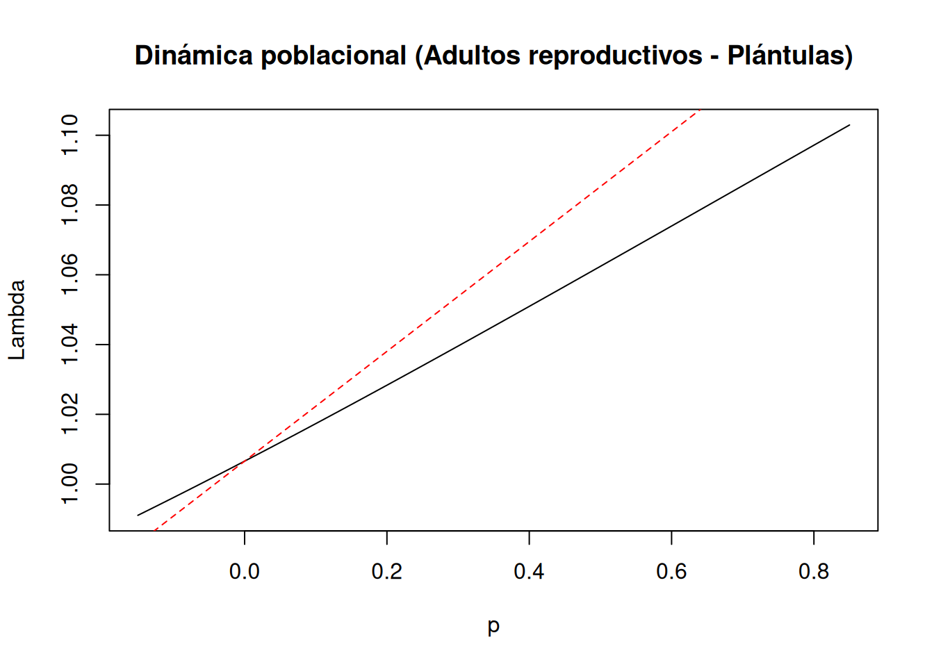 Es importante destacar que los análisis de perturbación a largo plazo (Caswell, 1989; De Kroon, Van Groenendael & Ehrlén, 2000), explicados en el capítulo de Elasticidad, asumen que la tasa de crecimiento poblacional (\(\lambda\)) varía de manera lineal cuando se modifica algún elemento de la dinámica poblacional. Esto implica que un cambio en un componente del sistema se traduce en un cambio proporcional en la tasa de crecimiento. Esta suposición es válida cuando las perturbaciones son pequeñas, ya que el efecto sobre \(\lambda\) será igualmente reducido.