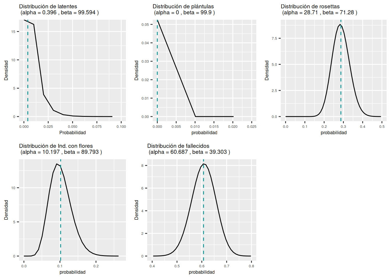 0.396, ", beta =", 99.594, ")"), x = "Probabilidad", y = "Densidad") +