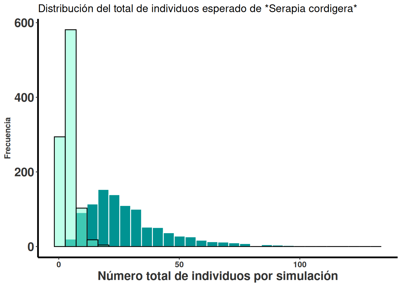 Observación de la variación temporal y espacial en el crecimiento poblacional de la especies de Serapia cordigera en un gráfico.